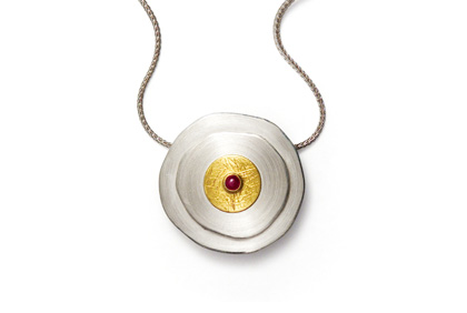 K486 - silver necklace with pure gold soldering and ruby (sterling silver, 24ct gold)